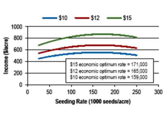 (Research trials were planted in 30-inch rows, economic optimumseeding rates would be expected to be greater in narrow rows.)