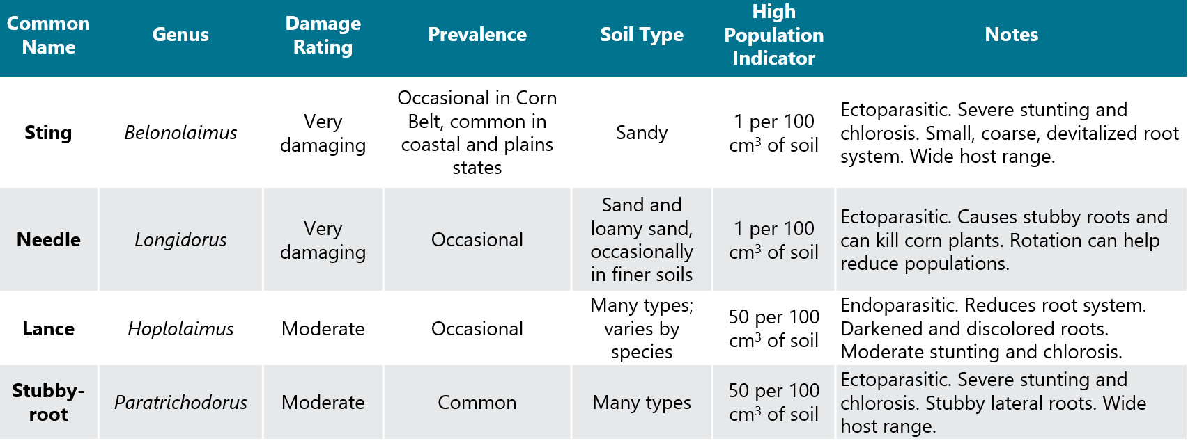 Table 1. Corn nematodes of economic importance in North American corn production.